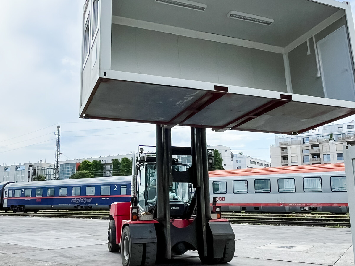 Alle gebrauchten Container sind sofort ab Depot Wien verfügbar. Nach Zahlungseingang organisieren wir die Zustellung innerhalb von 1–2 Werktagen (oder nach Vereinbarung). Unser Partner move-it setzt LKW-Ladekräne ein; das Transportpauschale enthält die üblichen Hebe-arbeiten vor Ort. Erforderlich sind ein tragfähiges, nivelliertes Fundament (± 1 cm), eine Zufahrt von min. 3,5 m Breite / 4,2 m Höhe und freier Platz zum Schwenken des Krans. Selbstabholung per Stapler ist möglich (Gabelzinken ≥ 2.450 mm), Hebe-kosten sind dann separat zu tragen.