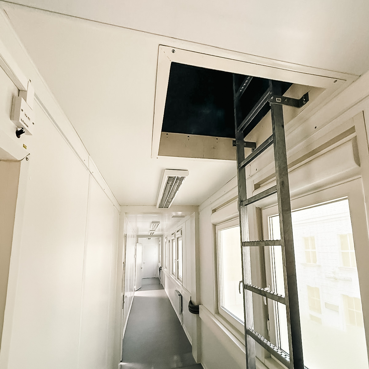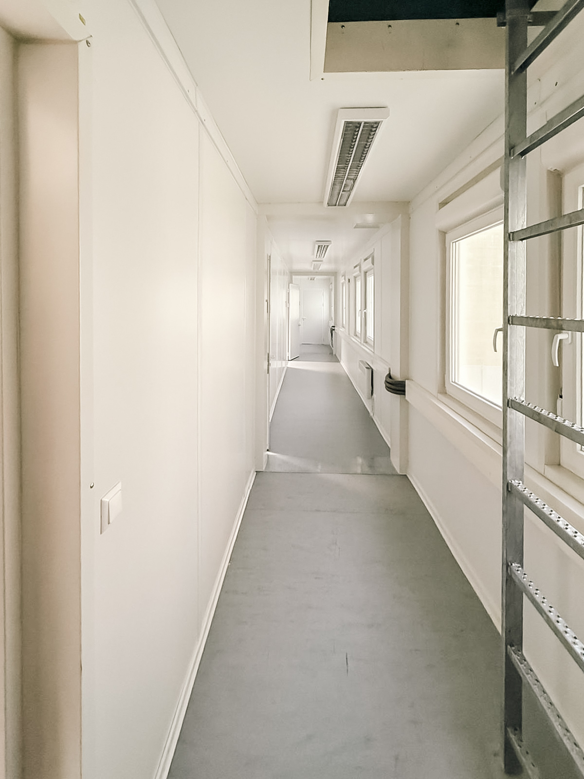 The installations also make a strong visual contribution to the project. Large branded façades turn the temporary buildings into a visible part of the construction site, while inside, bright circulation areas, clearly organised office spaces and functional access routes are designed for intensive daily use.