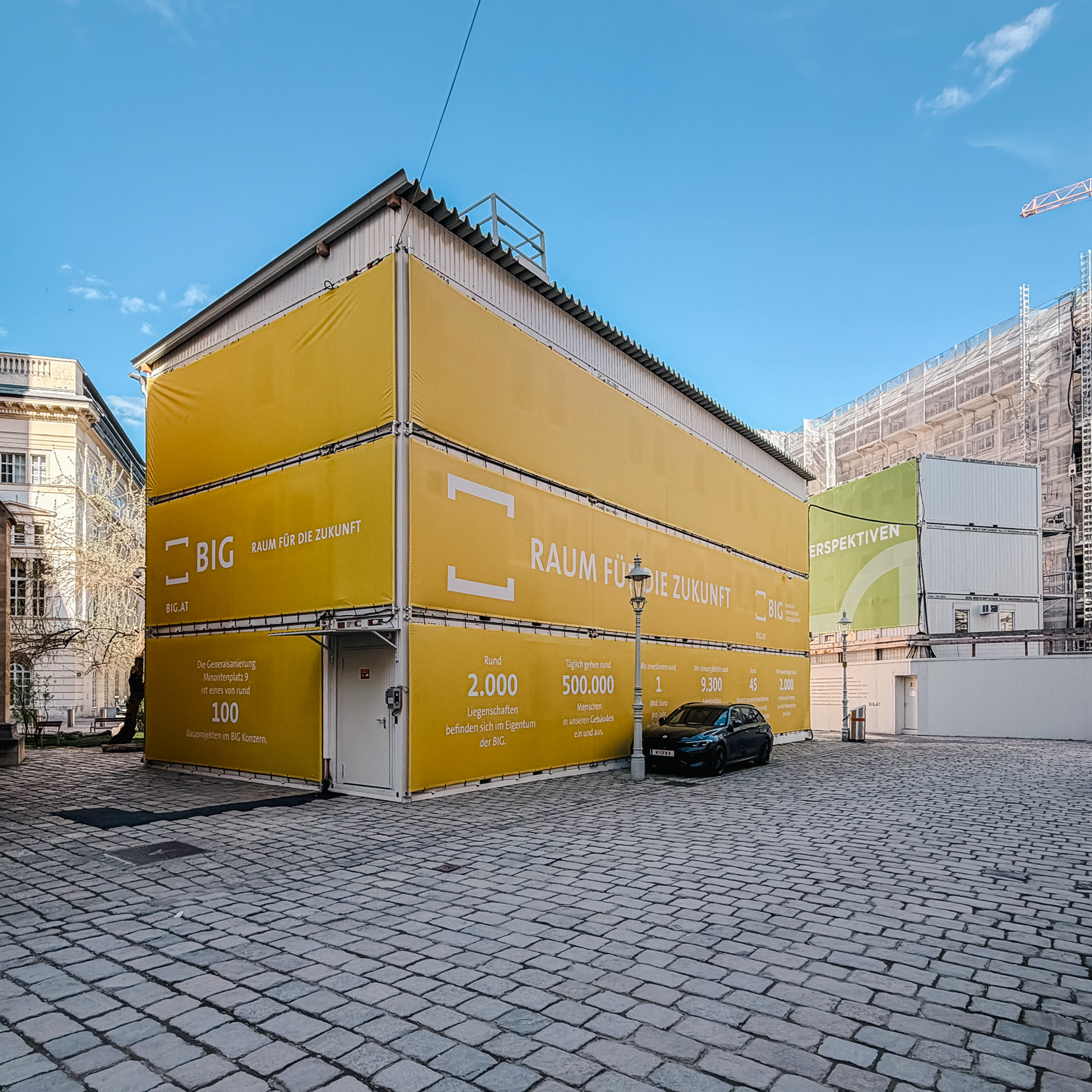 For the refurbishment of Minoritenplatz 9 in Vienna, CHV delivered a total of three multi-storey container office installations as temporary site offices for BIG and ARE. Built within a highly constrained inner-city setting, these modular office units provide the infrastructure needed to manage and coordinate a complex large-scale construction project.
