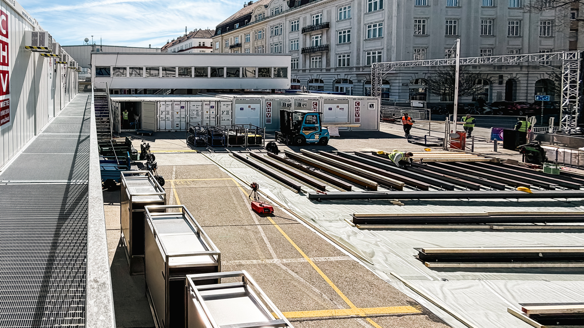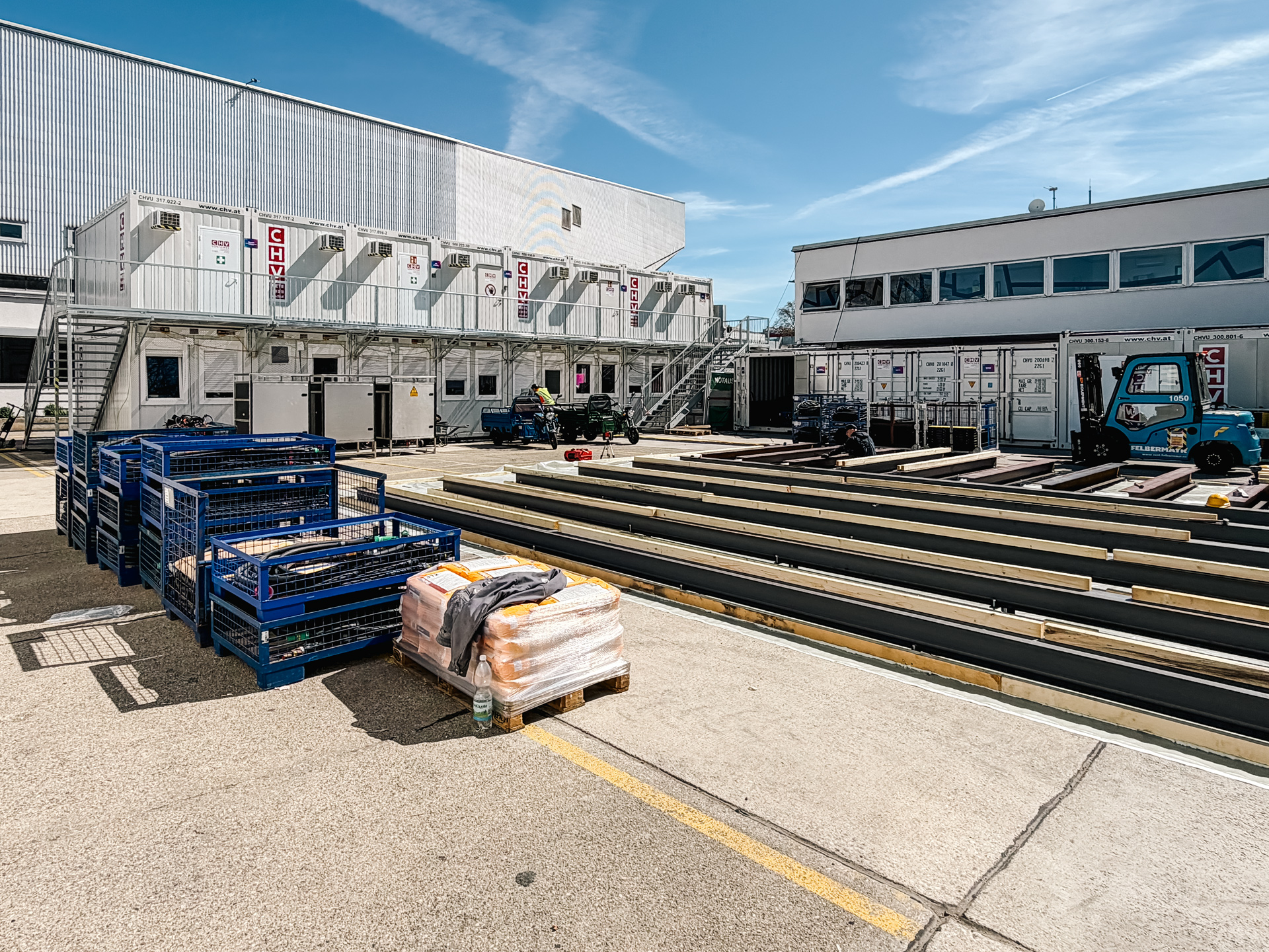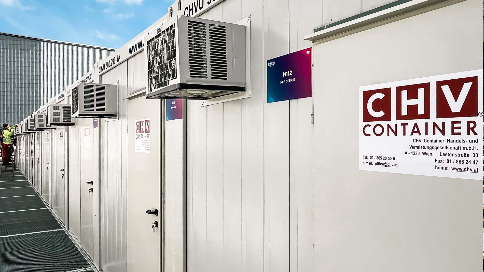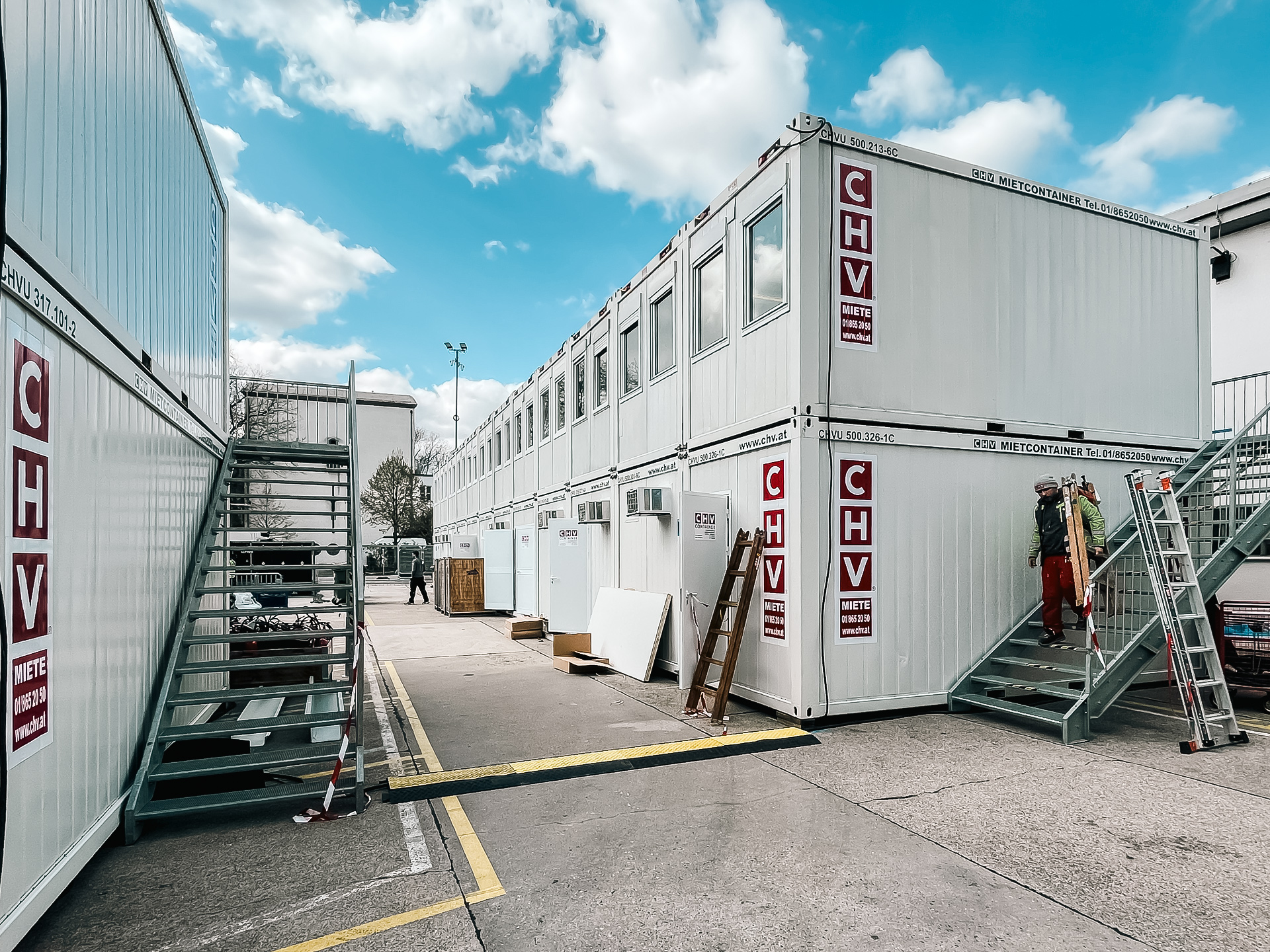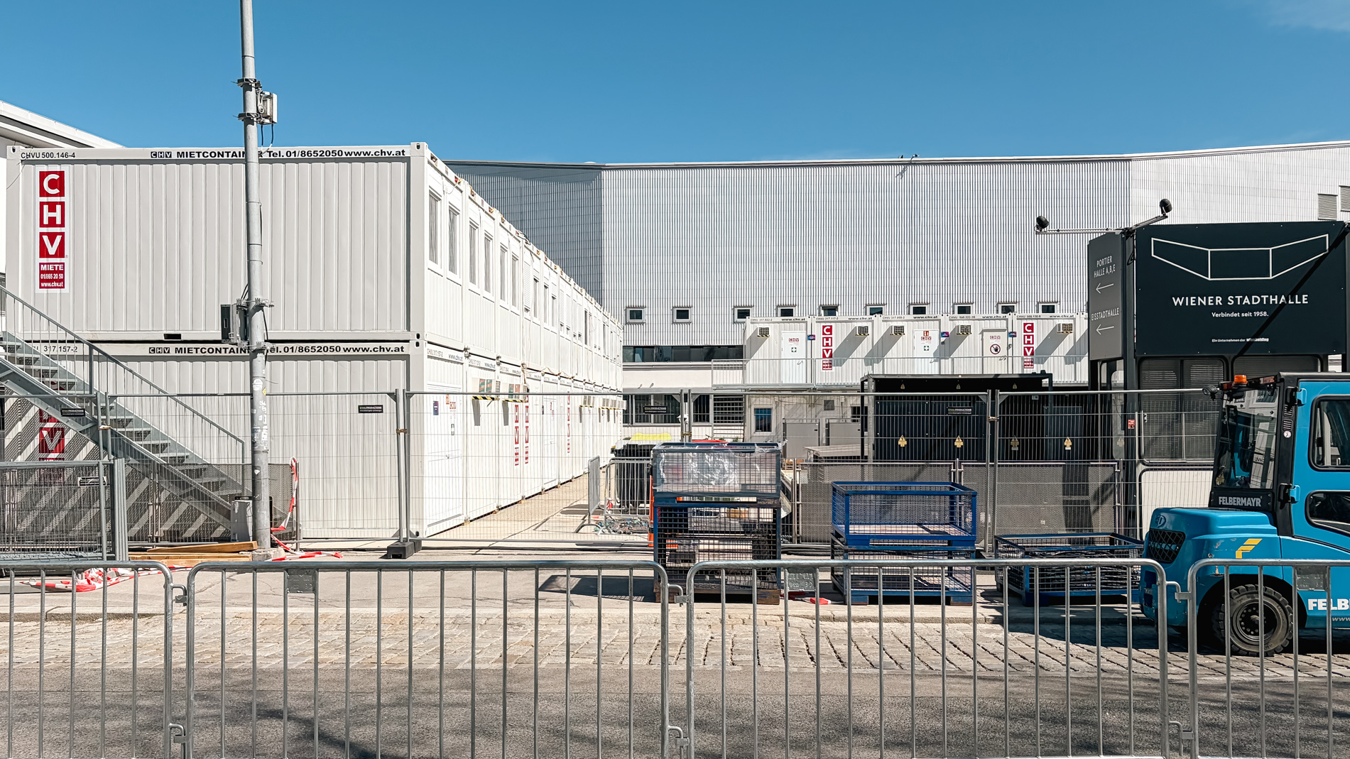 Das Projekt an der Wiener Stadthalle unterstreicht damit die Kompetenz von CHV bei umfangreichen Containeranlagen für zeitkritische Einsätze. Von der Anlieferung über die Aufstellung bis zur fertigen Betriebsstruktur entstand eine modulare Raumlösung, die den hohen Anforderungen eines internationalen Broadcast- und Eventumfelds gerecht wird.