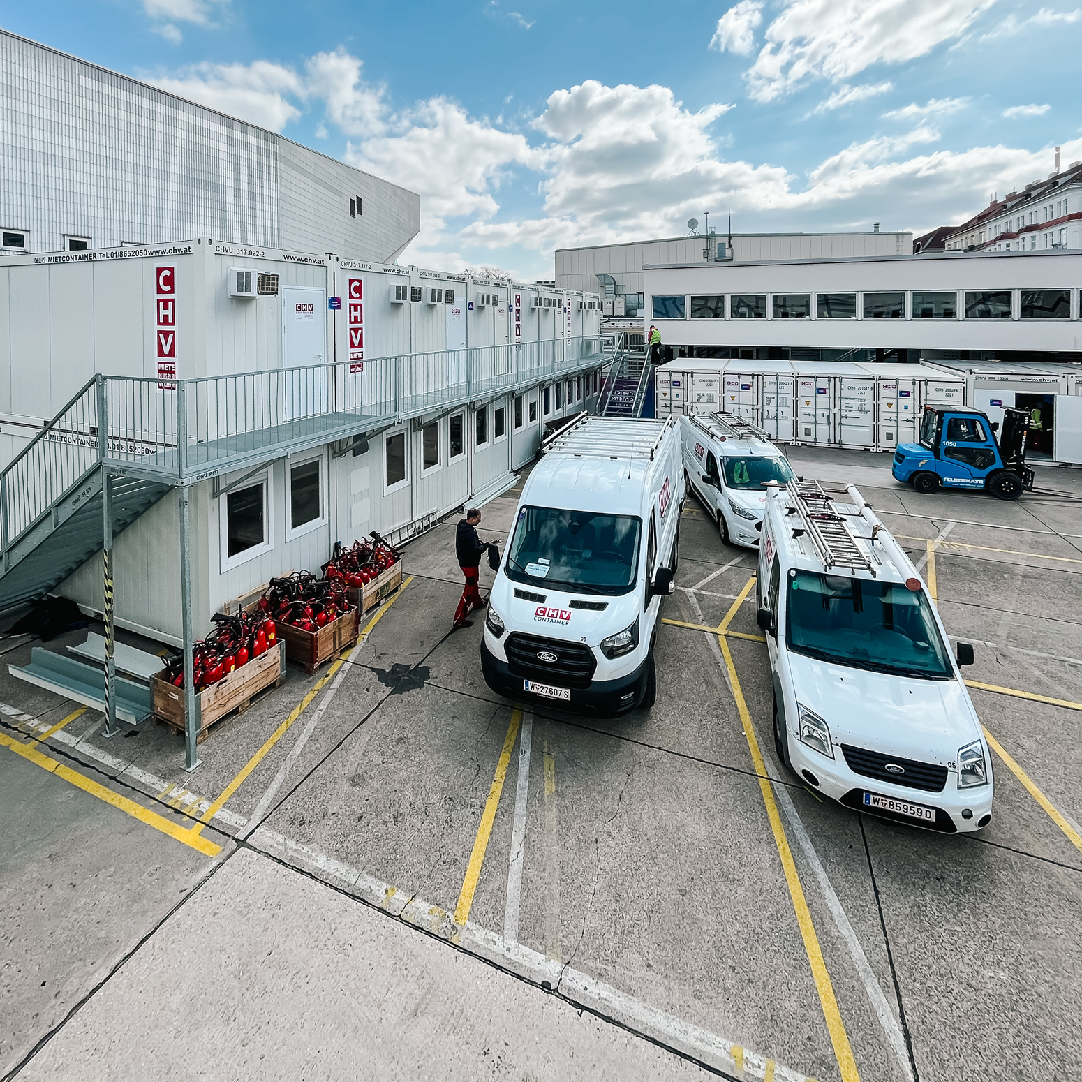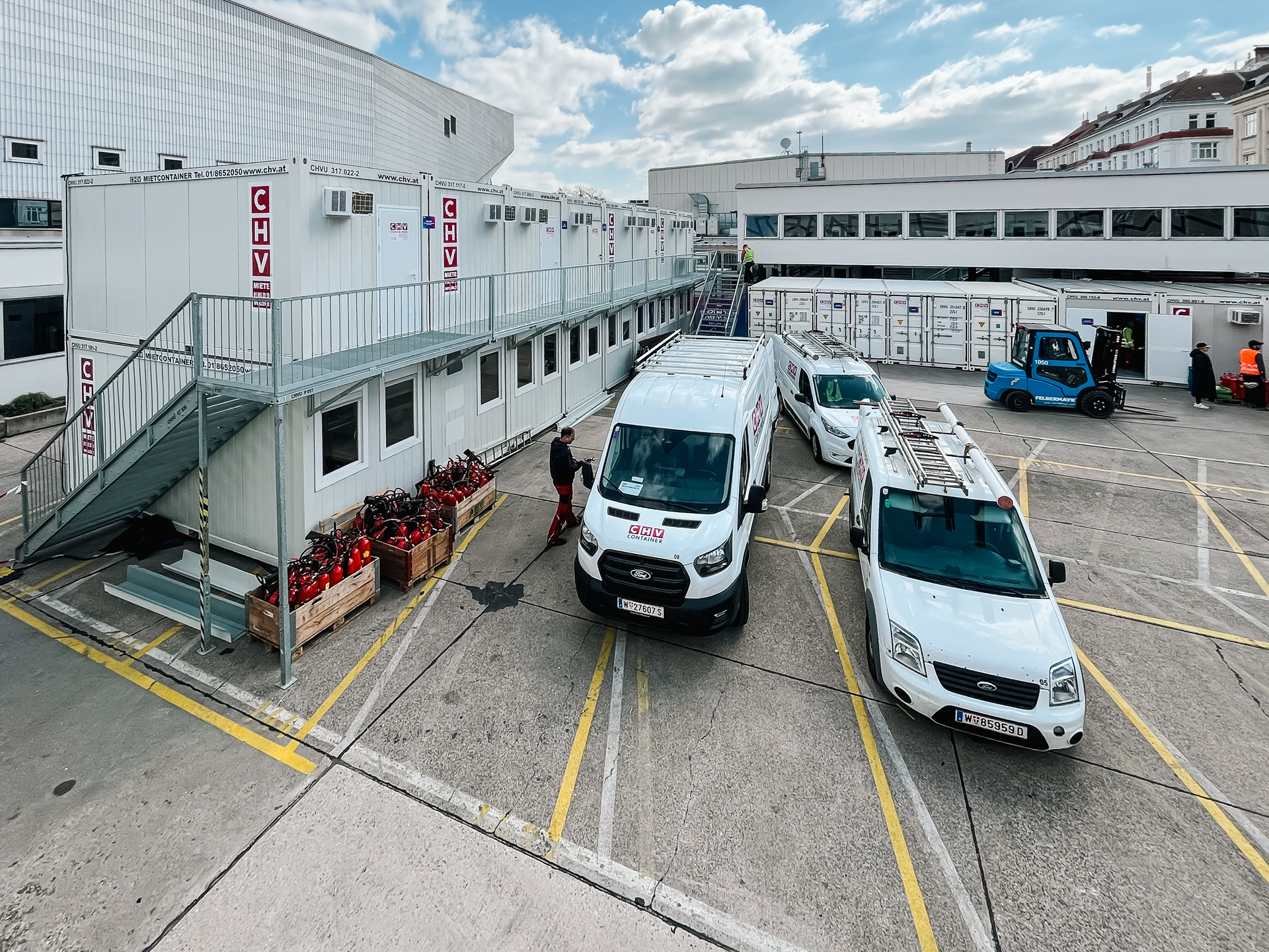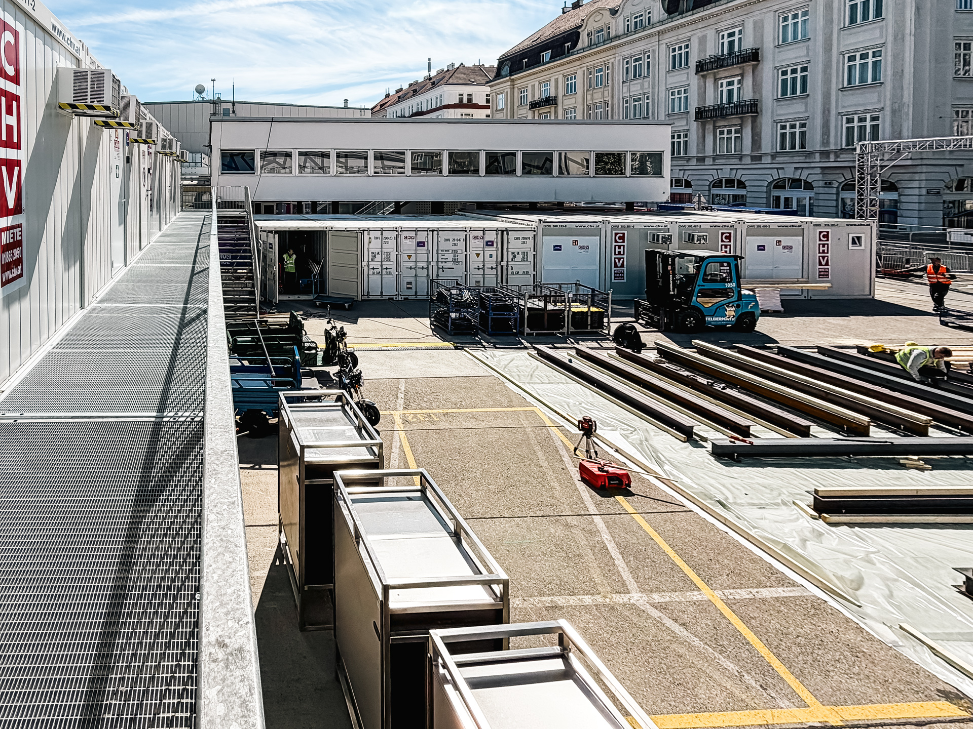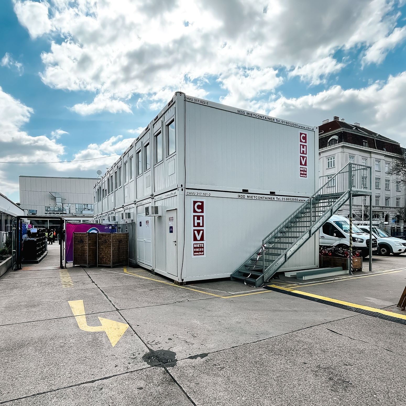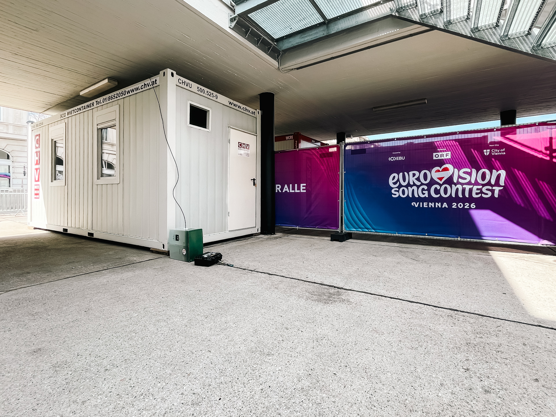 Rund um die Wiener Stadthalle wurde für den Eurovision Song Contest eine umfangreiche temporäre Infrastruktur benötigt, die innerhalb kurzer Zeit bereitstehen und im laufenden Betrieb zuverlässig funktionieren musste. CHV lieferte dafür mehr als 100 Container, die als mehrteilige Containeranlagen in den TV-Compound integriert wurden und dort als räumliche Grundlage für zentrale Abläufe im Umfeld der Produktion dienten.